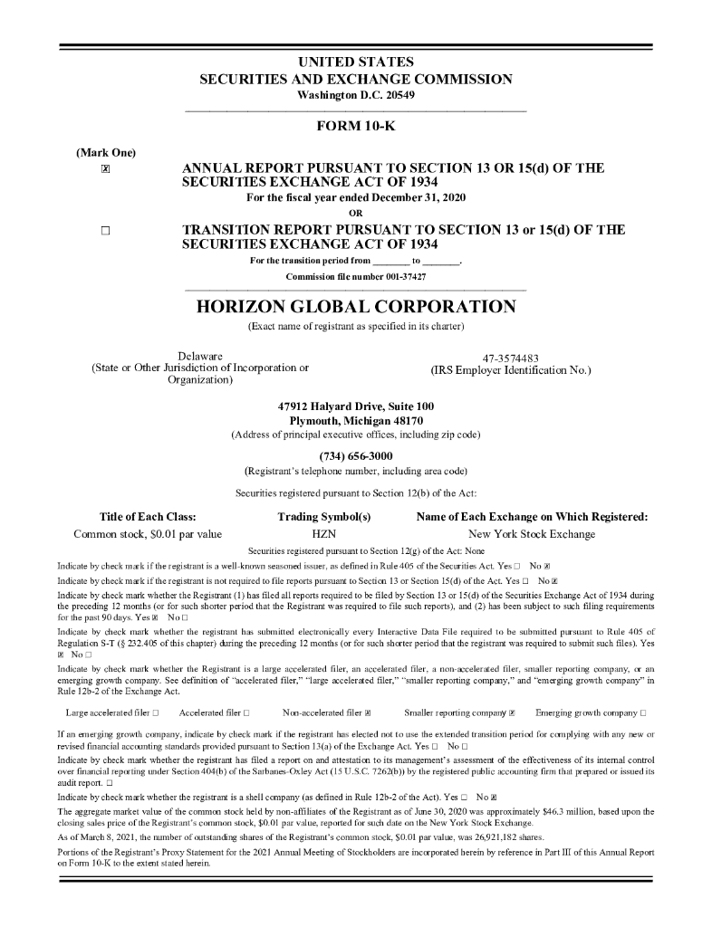 Horizon Global Corporation(HZN)2020财年年度报告(英文版).pdf