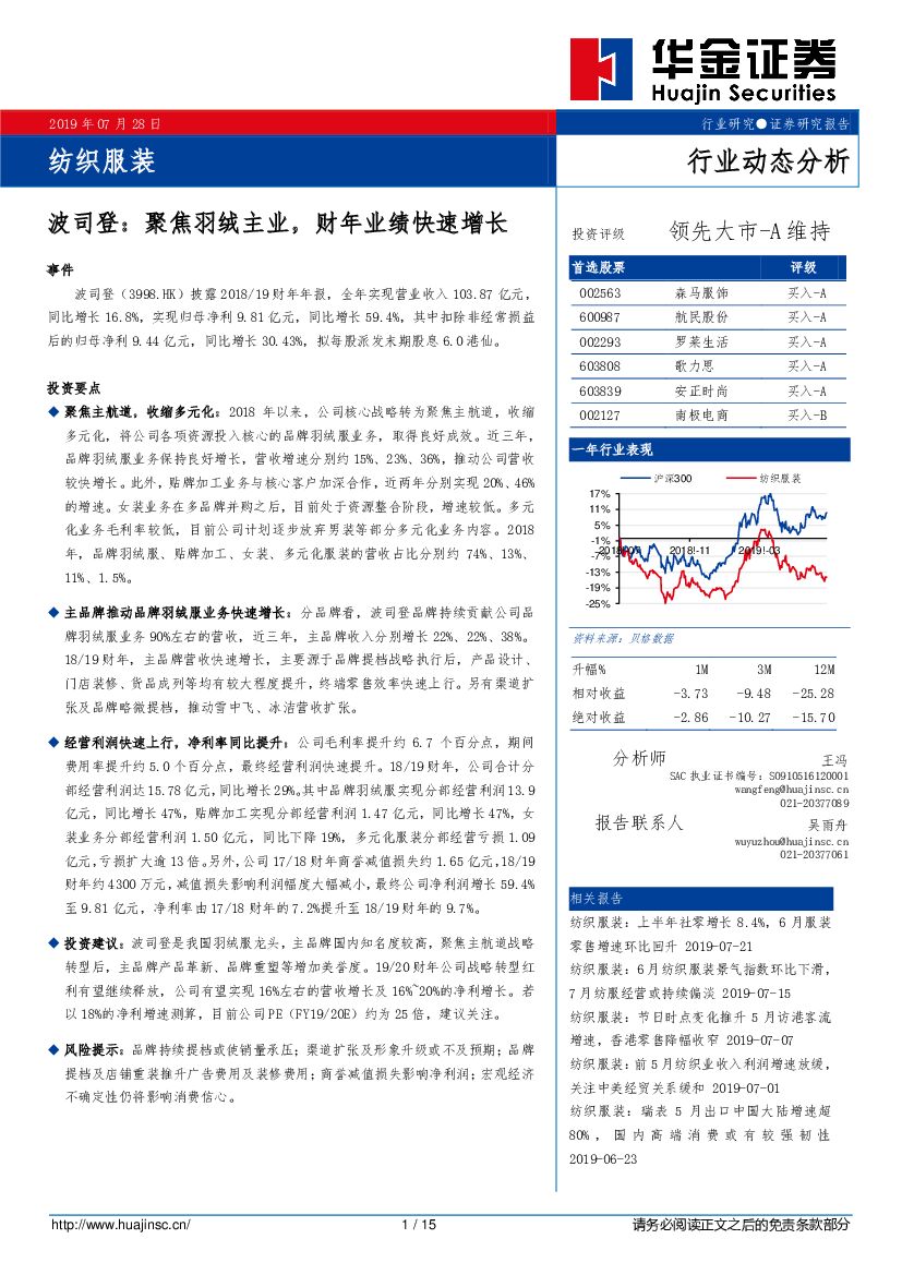 华金证券:纺织服装行业动态分析:波司登:聚焦羽绒主业,财年业绩快速增长.pdf
