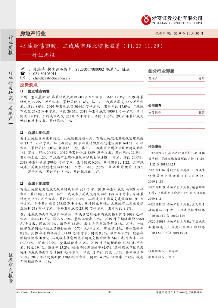 浙商证券:房地产行业周报:45城销售回暖,二线城市环比增长显著.pdf