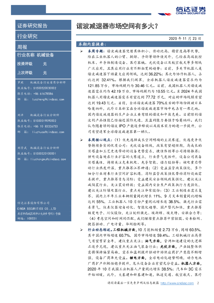 信达证券:机械设备行业周报:谐波减速器市场空间有多大?.pdf