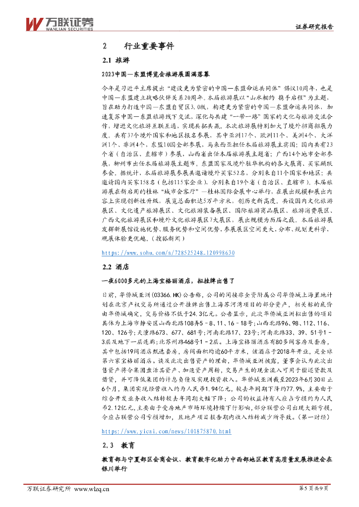 万联证券:社会服务行业周观点:东盟博览会圆满落幕,上海宝格丽酒店拟定出售.pdf