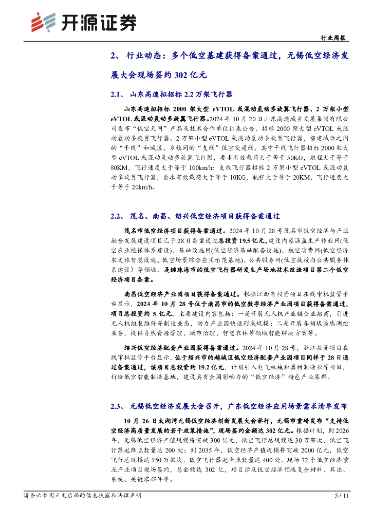 开源证券:电力设备行业周报:低空经济行业周报:(11月第1周)多地低空基建备案获得通过,山东高速无人机拟招标国内首次.pdf