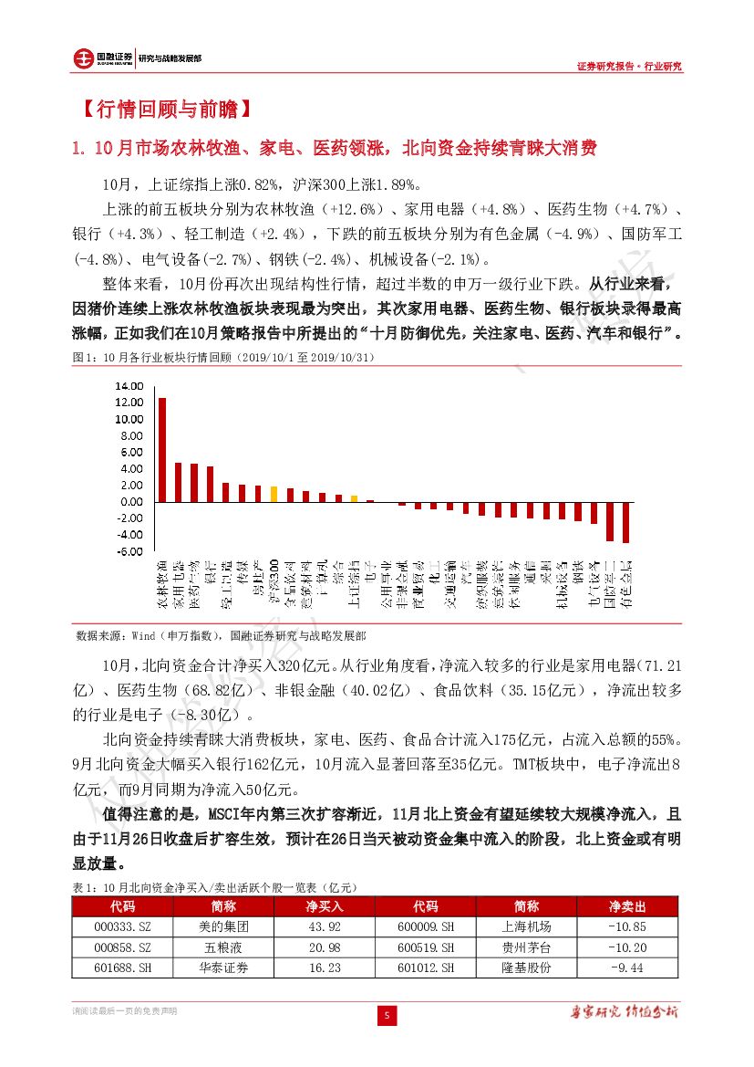 国融证券:2019年11月投资策略:首选低估值消费,配置家电、食品、医药、汽车和银行.pdf