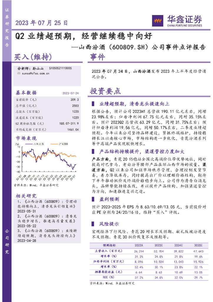 华鑫证券:山西汾酒(600809)-公司事件点评报告:Q2业绩超预期,经营继续稳中向好.pdf