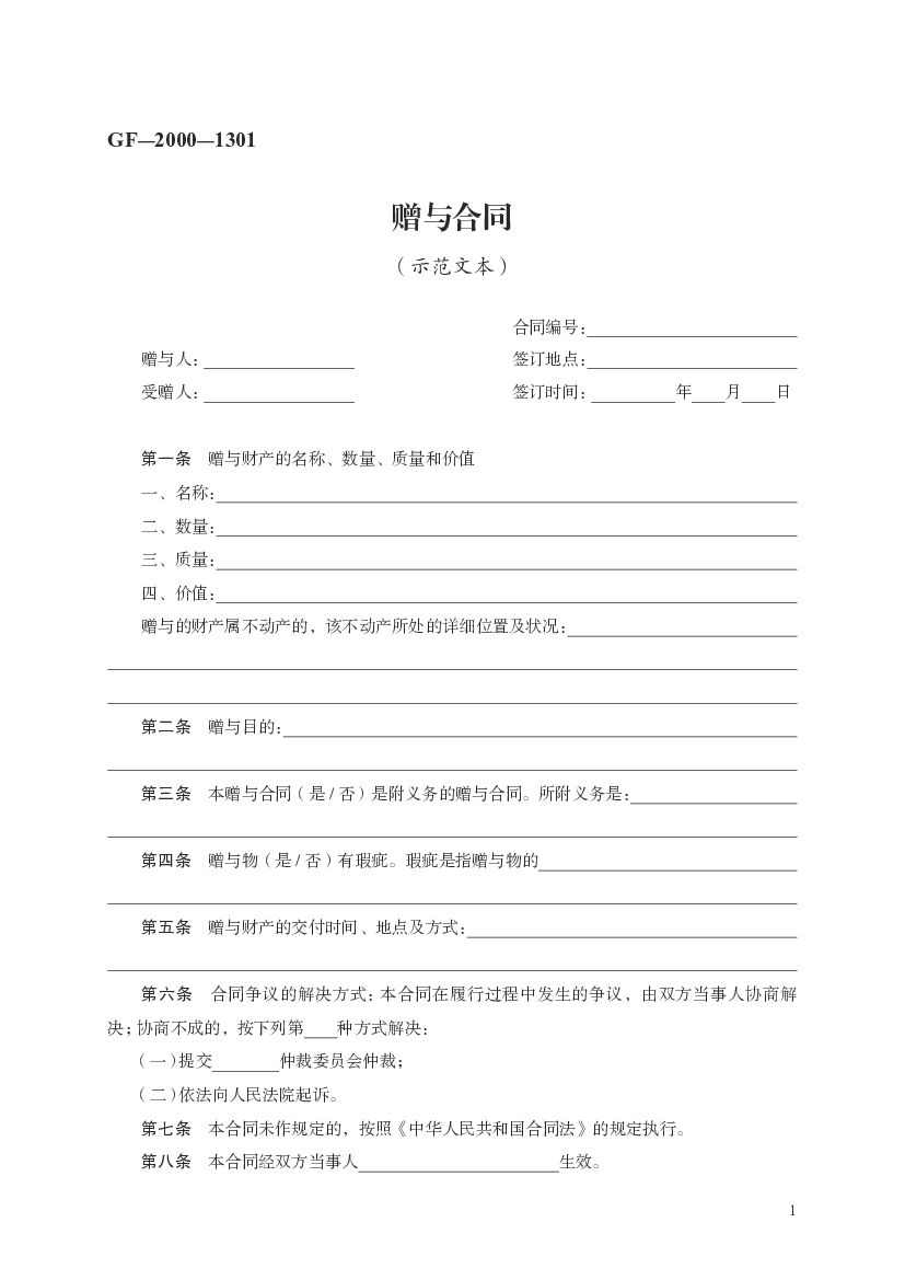 GF-2000-1301 赠与合同(示范文本).pdf