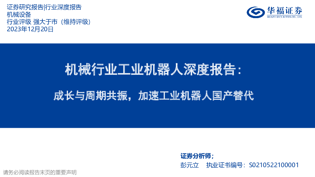 华福证券:机械行业工业机器人深度报告:成长与周期共振,加速工业机器人国产替代.pdf