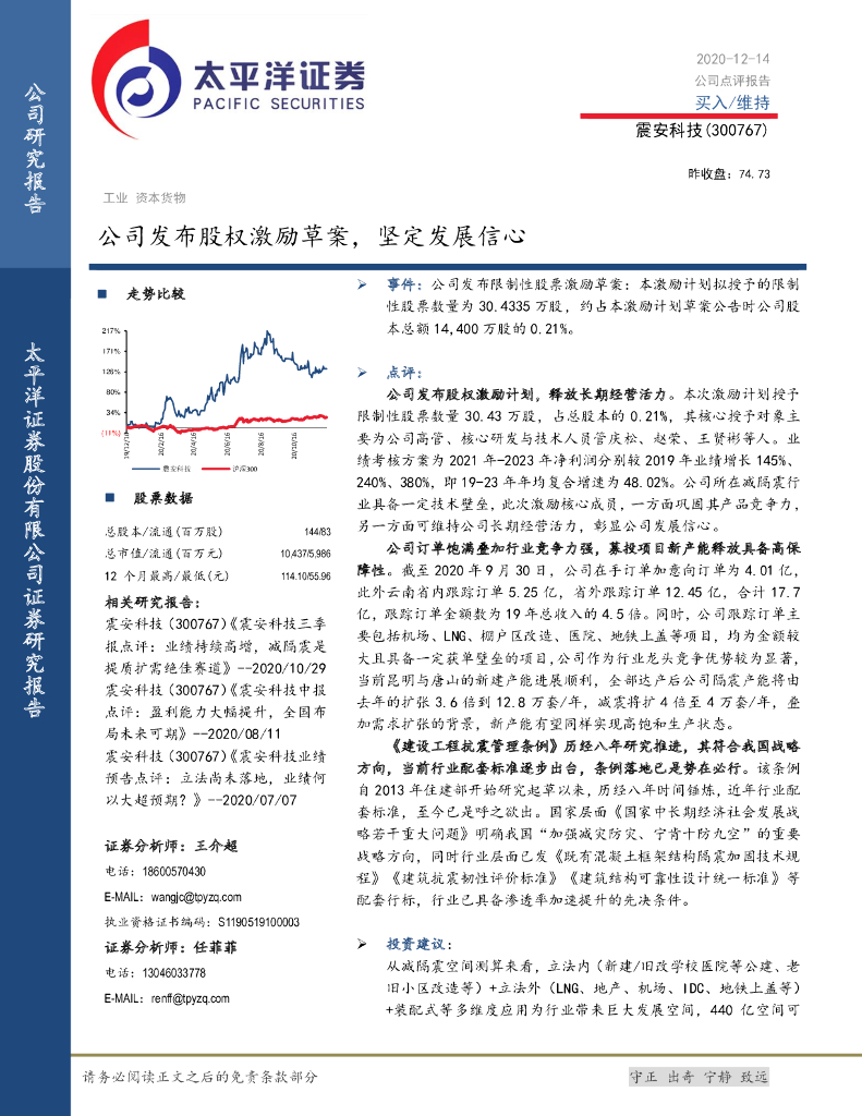 太平洋证券:震安科技(300767)-公司发布股权激励草案,坚定发展信心.pdf