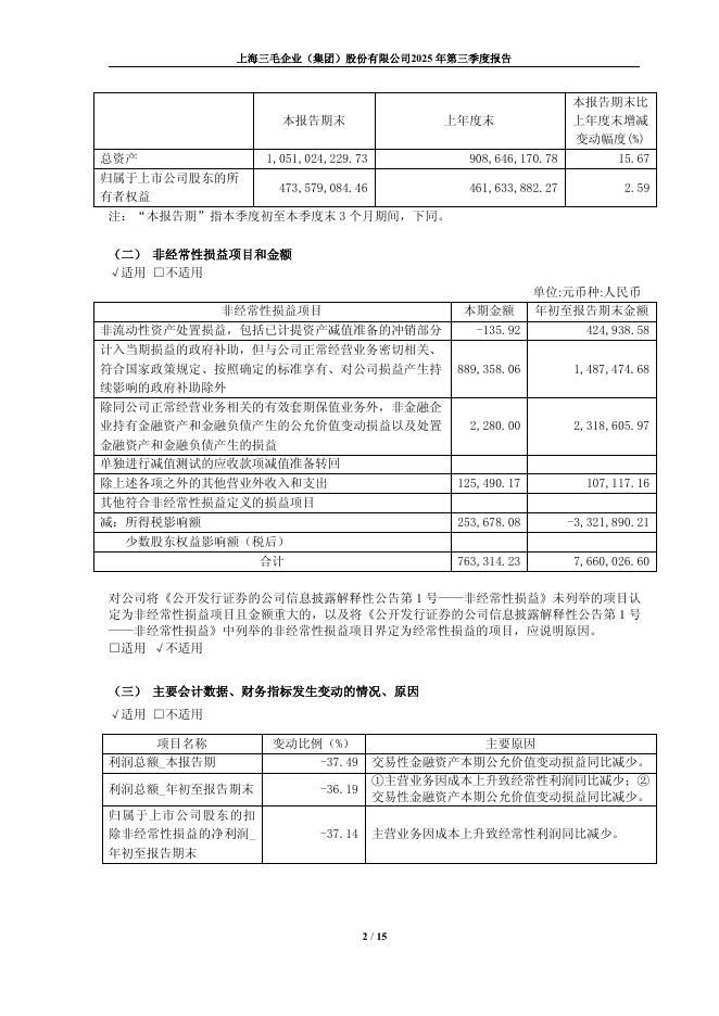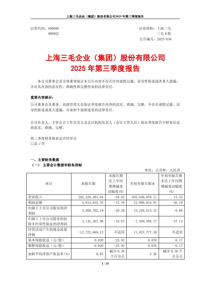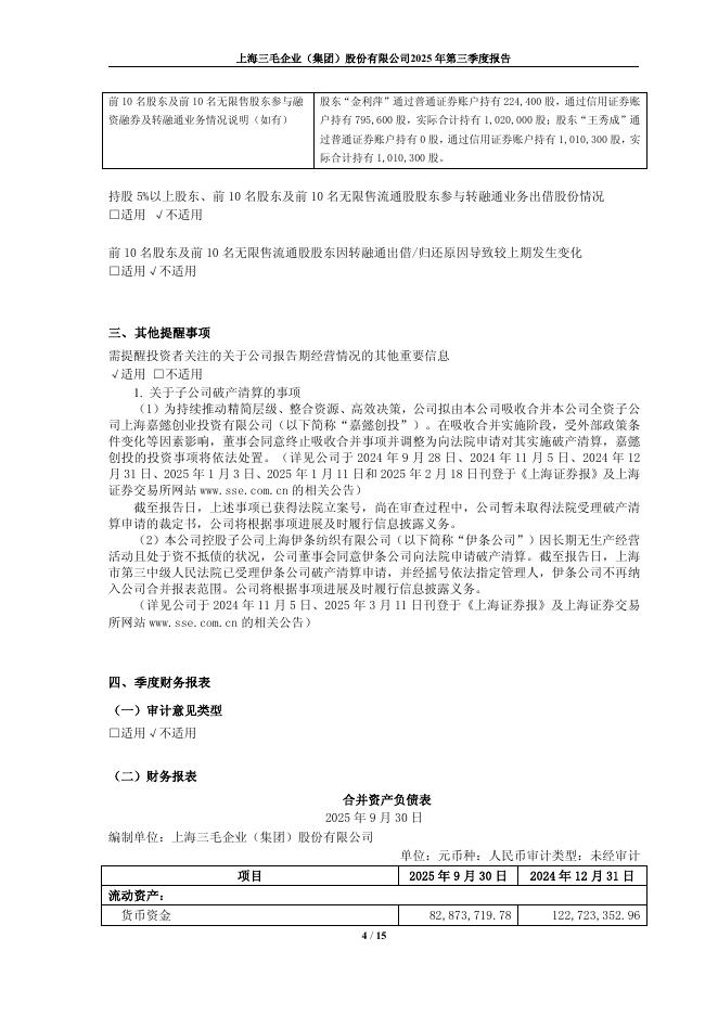 600689-上海三毛:上海三毛企业(集团)股份有限公司2025年第三季度报告.pdf