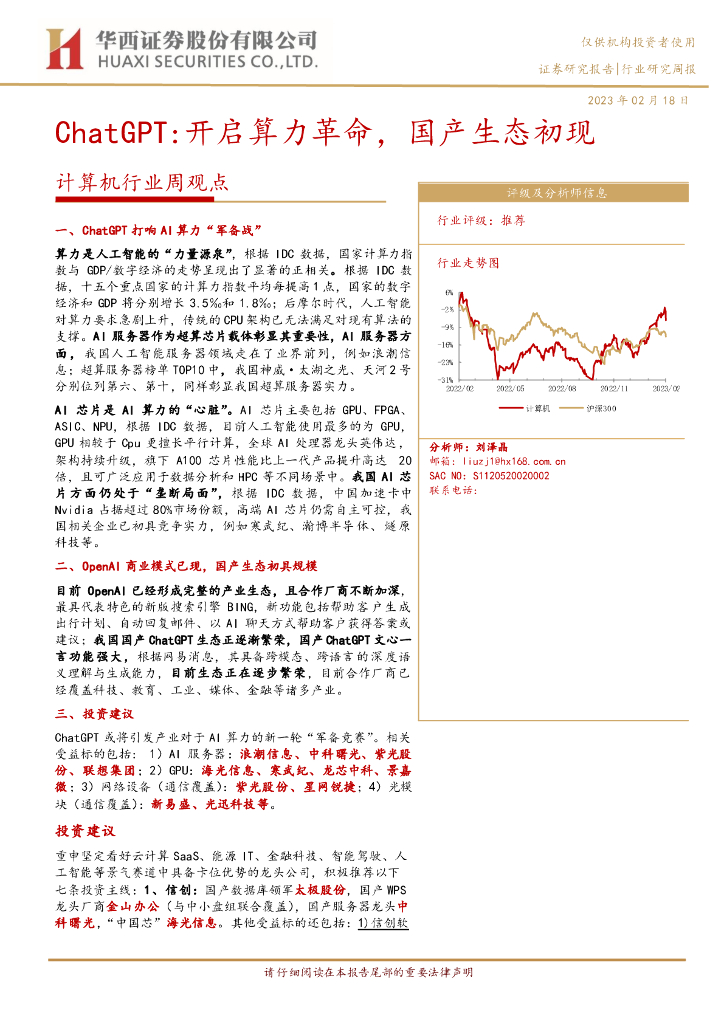 华西证券:计算机行业周观点:ChatGPT:开启算力革命,国产生态初现.pdf