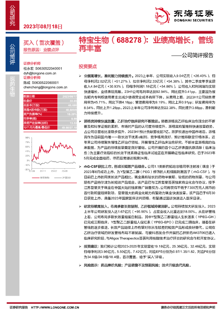 东海证券:特宝生物(688278)-公司简评报告:业绩高增长,管线再丰富.pdf