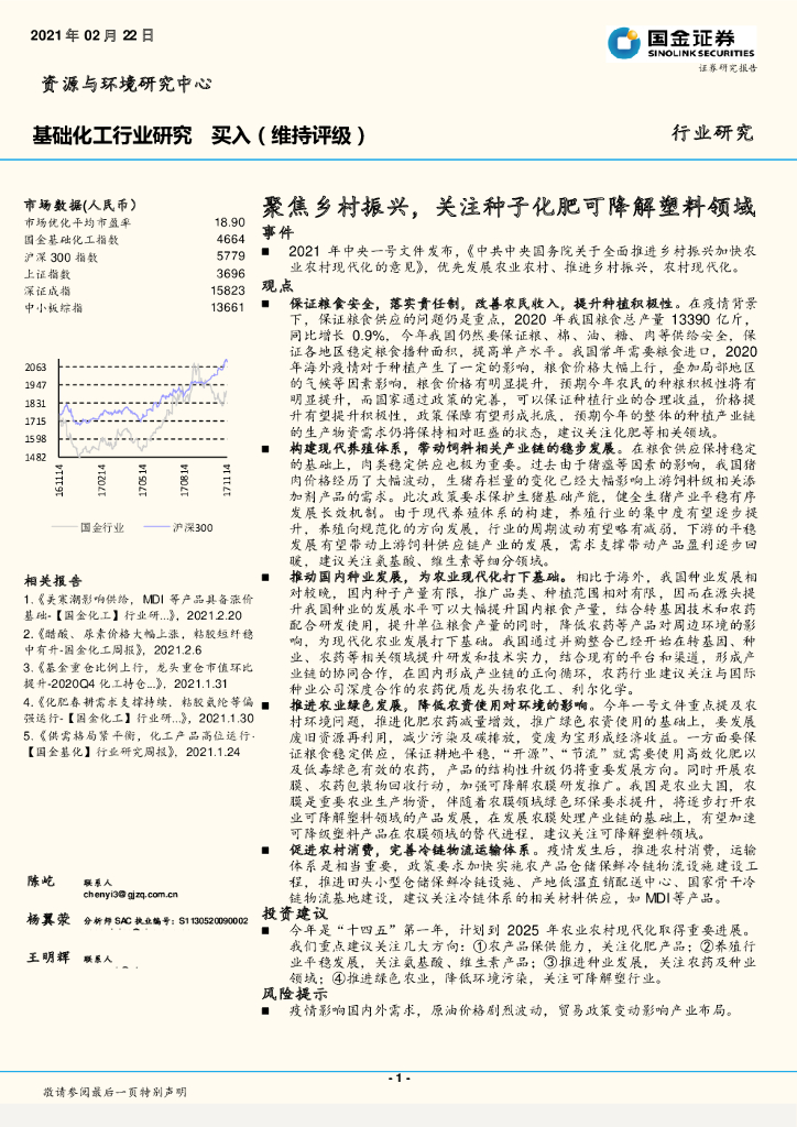 国金证券:基础化工行业研究:聚焦乡村振兴,关注种子化肥可降解塑料领域.pdf