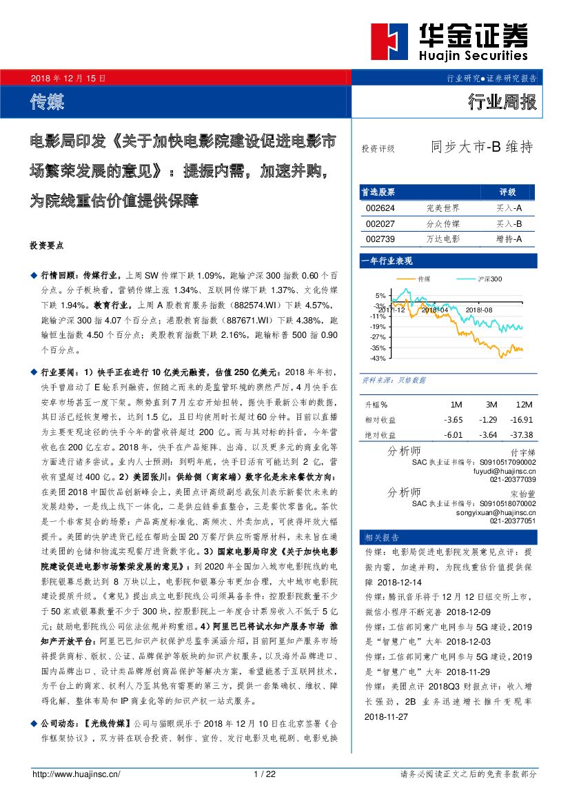 华金证券:传媒行业周报:电影局印发《关于加快电影院建设促进电影市场繁荣发展的意见》:提振内需,加速并购,为院线重估价值提供保障.pdf