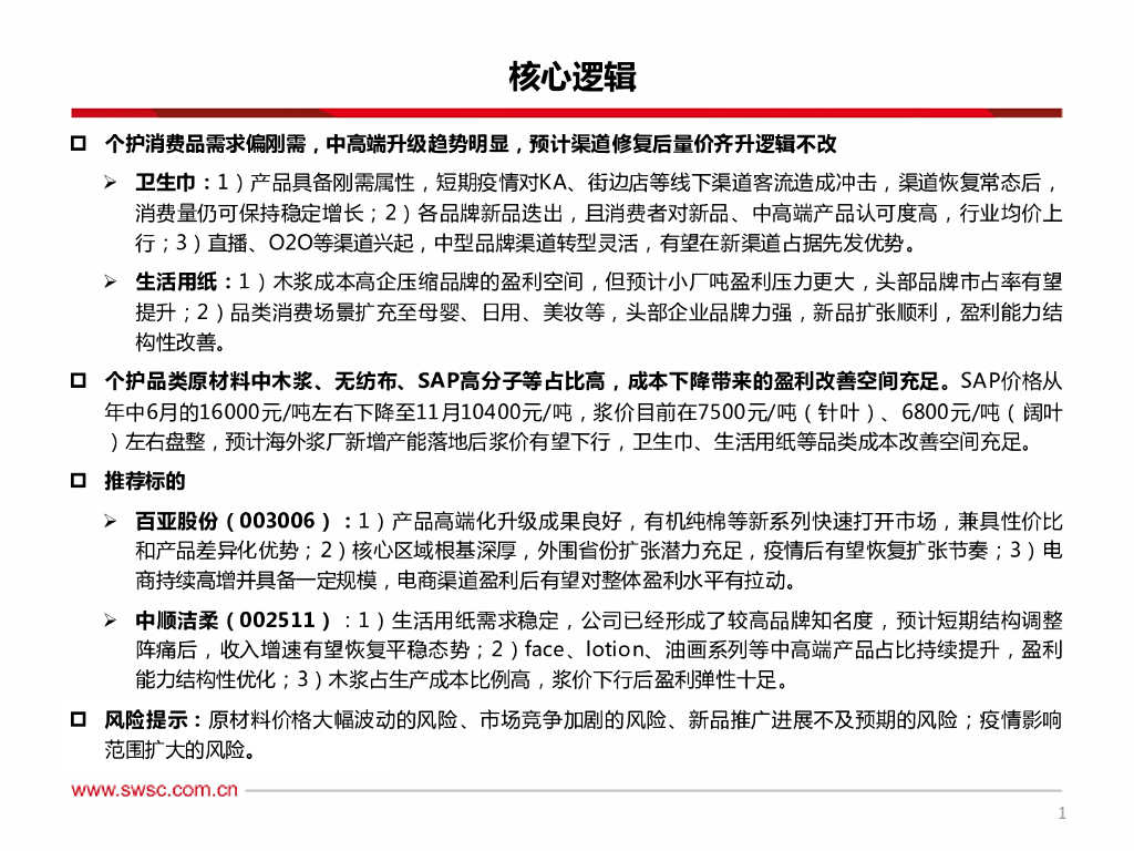 西南证券:轻工行业专题:关注个护消费品需求复苏、成本改善.pdf