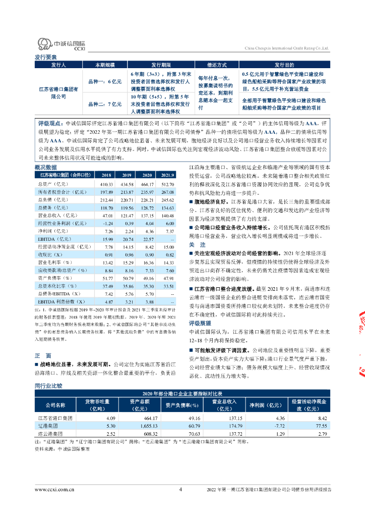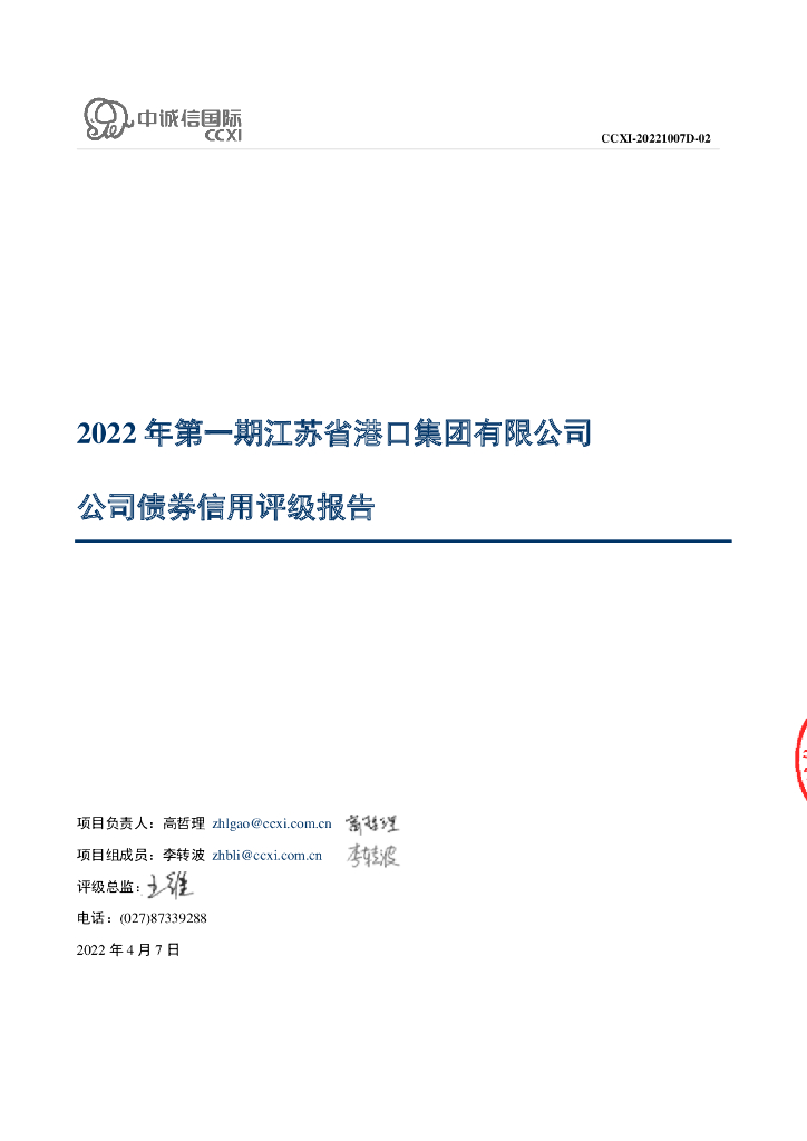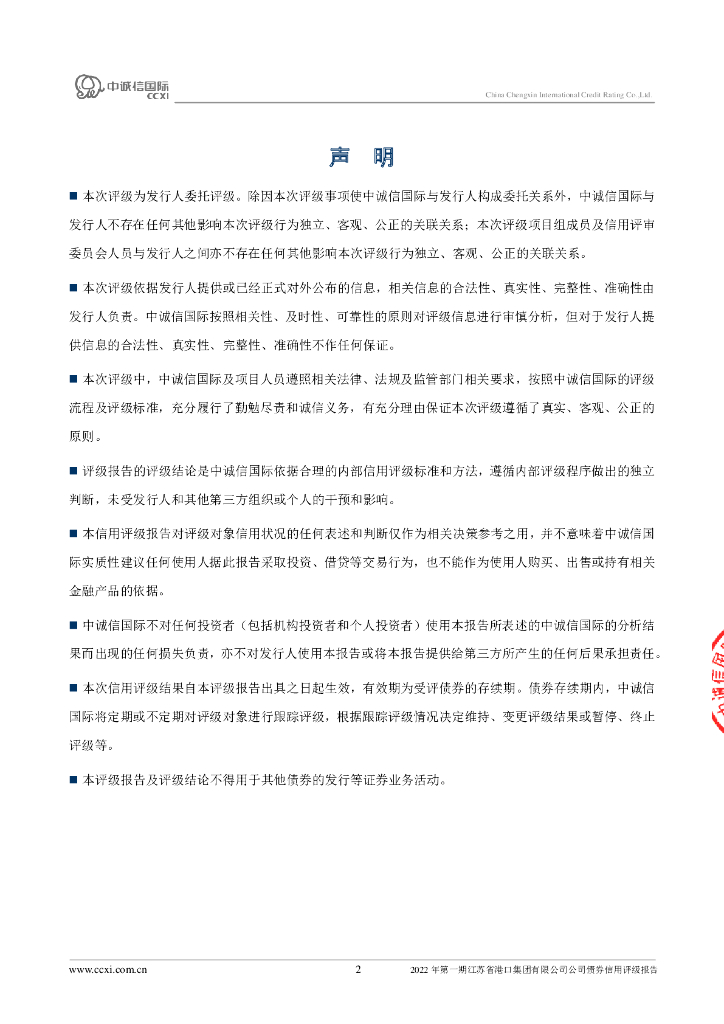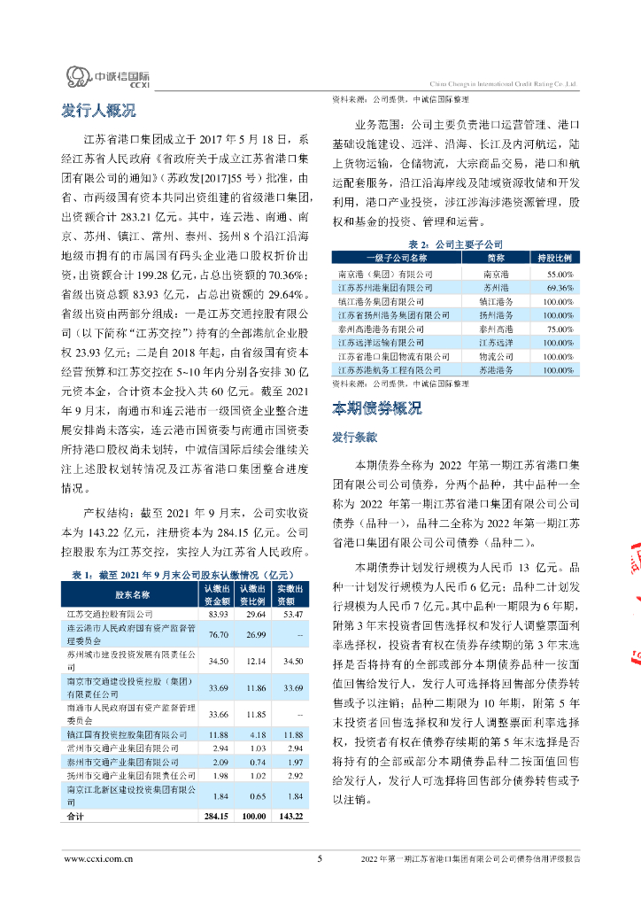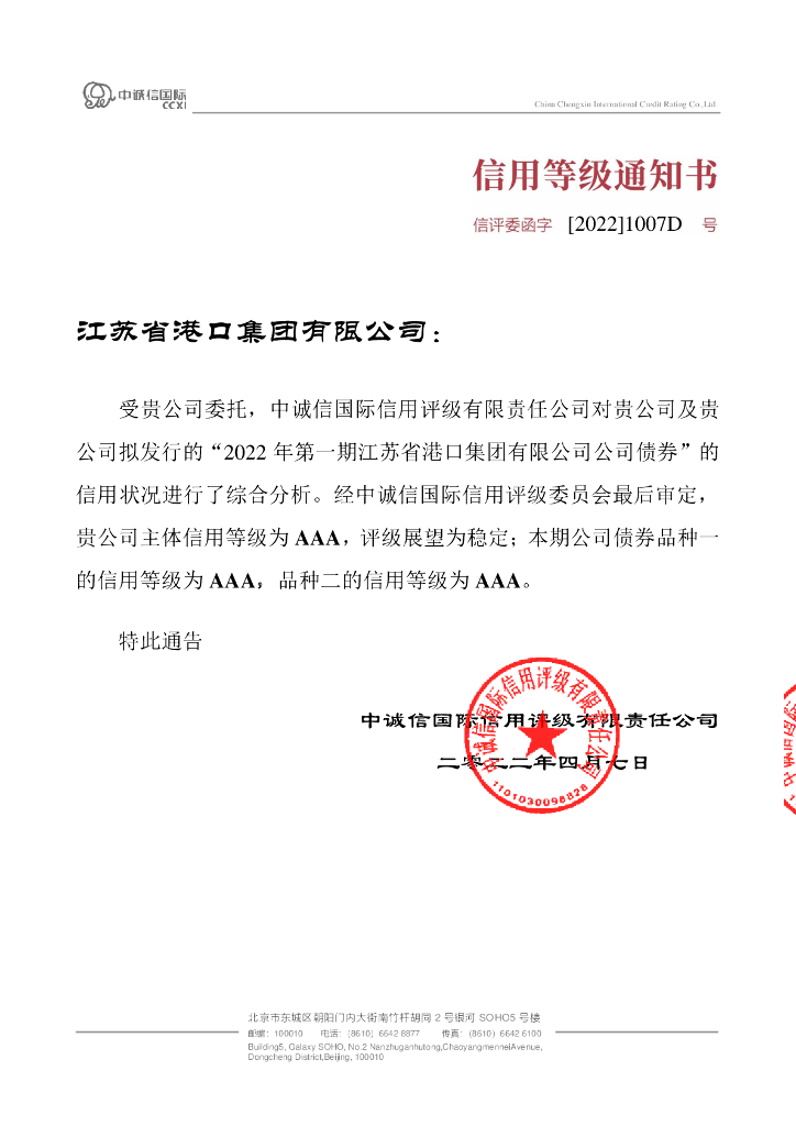 中诚信:2022年第一期江苏省港口集团有限公司公司债券信用评级报告.pdf