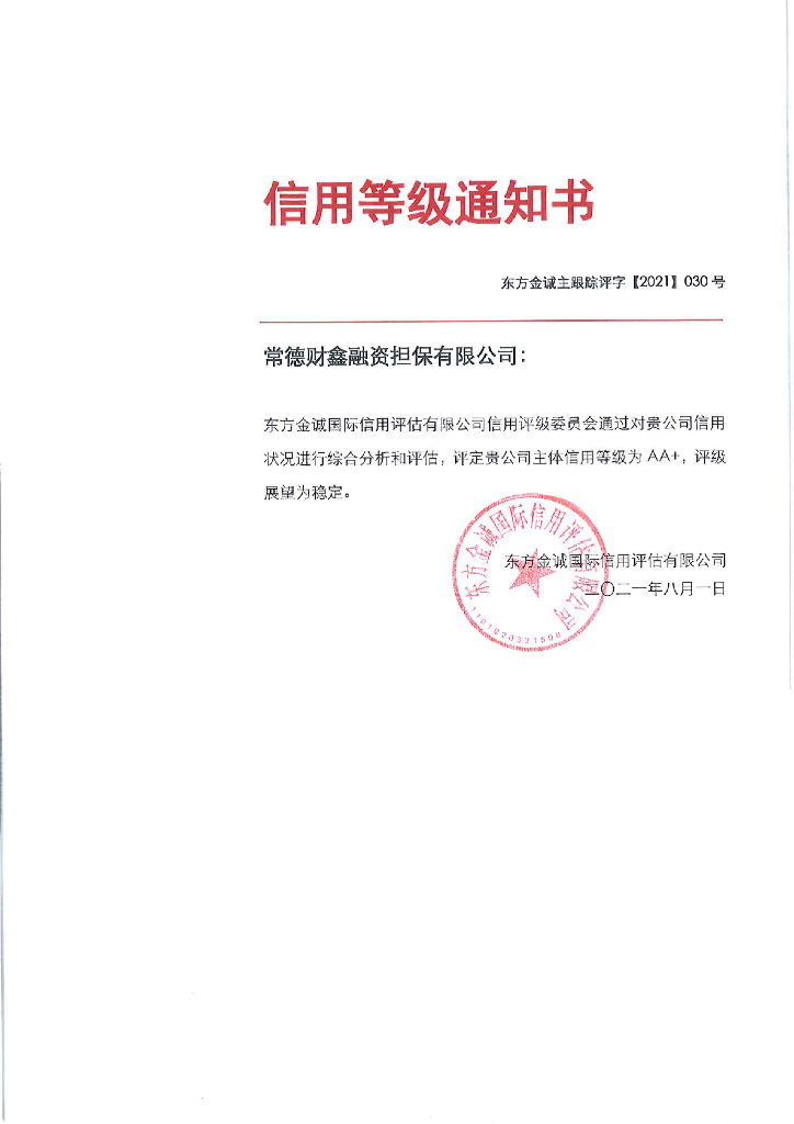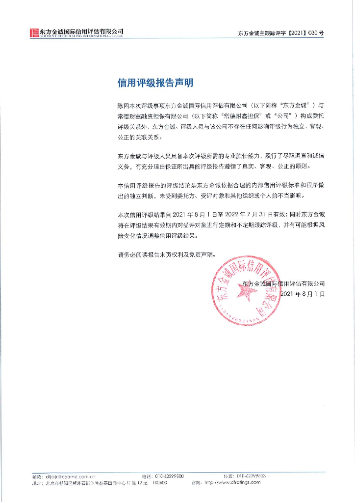 东方金诚:常德财鑫融资担保有限公司2021年主体信用评级报告.pdf