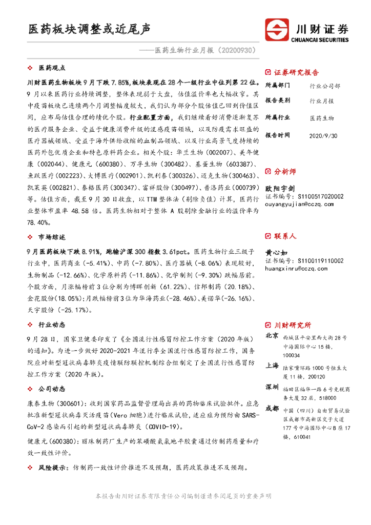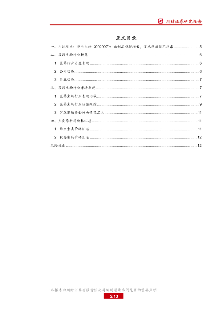 川财证券:医药生物行业月报:医药板块调整或近尾声.pdf