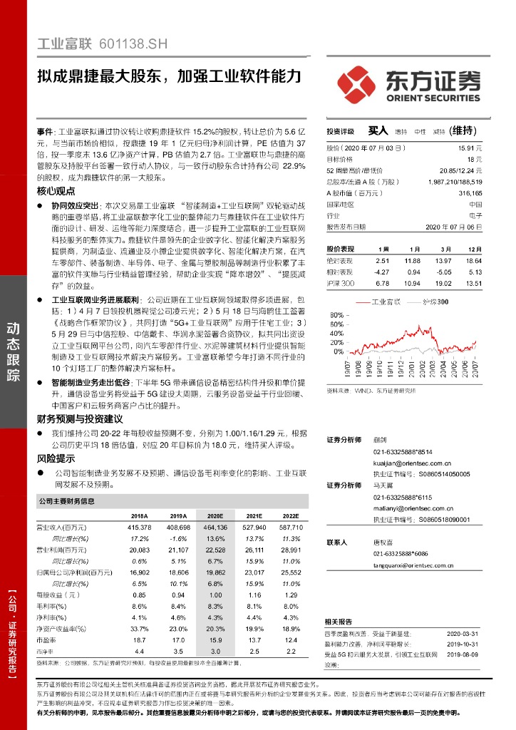 东方证券:工业富联(601138)-拟成鼎捷最大股东,加强工业软件能力.pdf