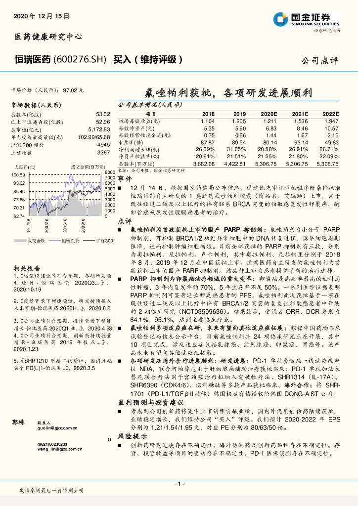 国金证券:恒瑞医药(600276)-氟唑帕利获批,各项研发进展顺利.pdf
