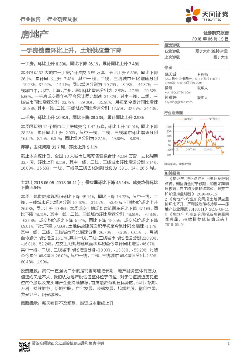 天风证券:房地产行业研究周报:一手房销量环比上升,土地供应量下降.pdf