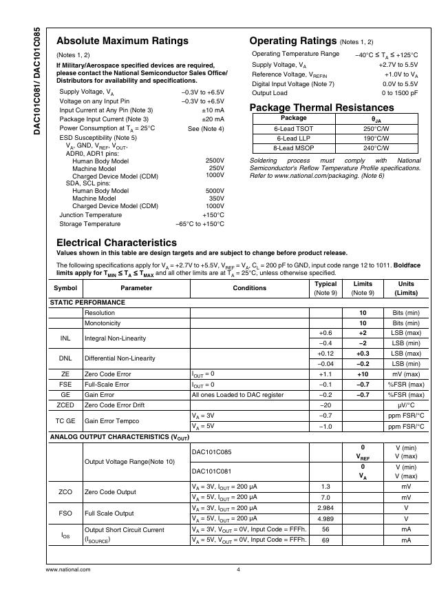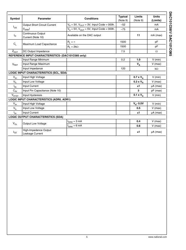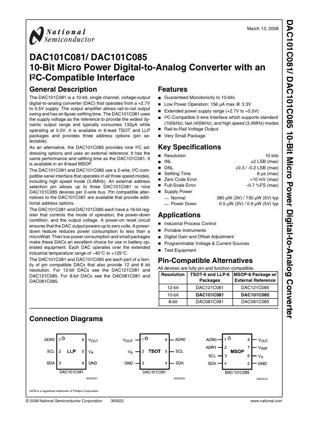 NATIONAL SEMICONDUCTOR DAC101C081/ DAC101C085 10-Bit Micro Power Digital-to-Analog Converter 数据手册.pdf
