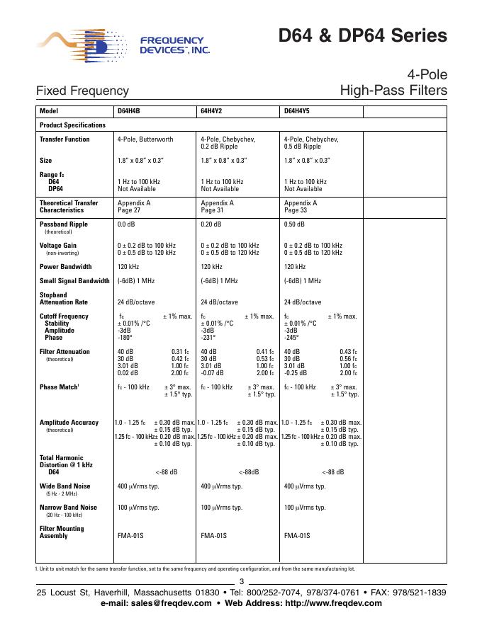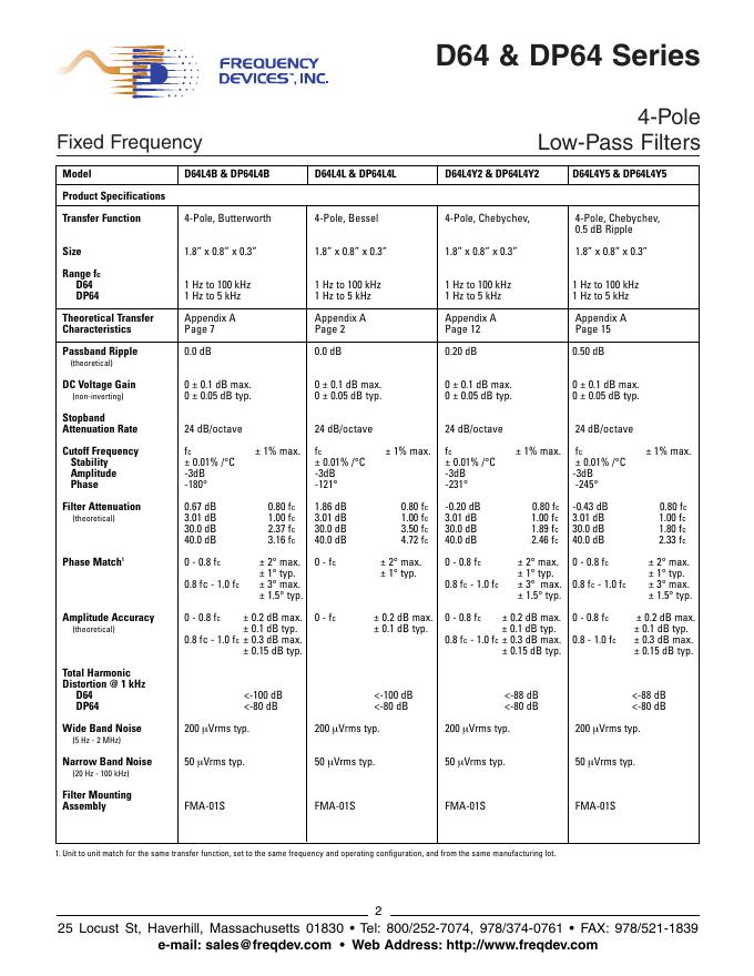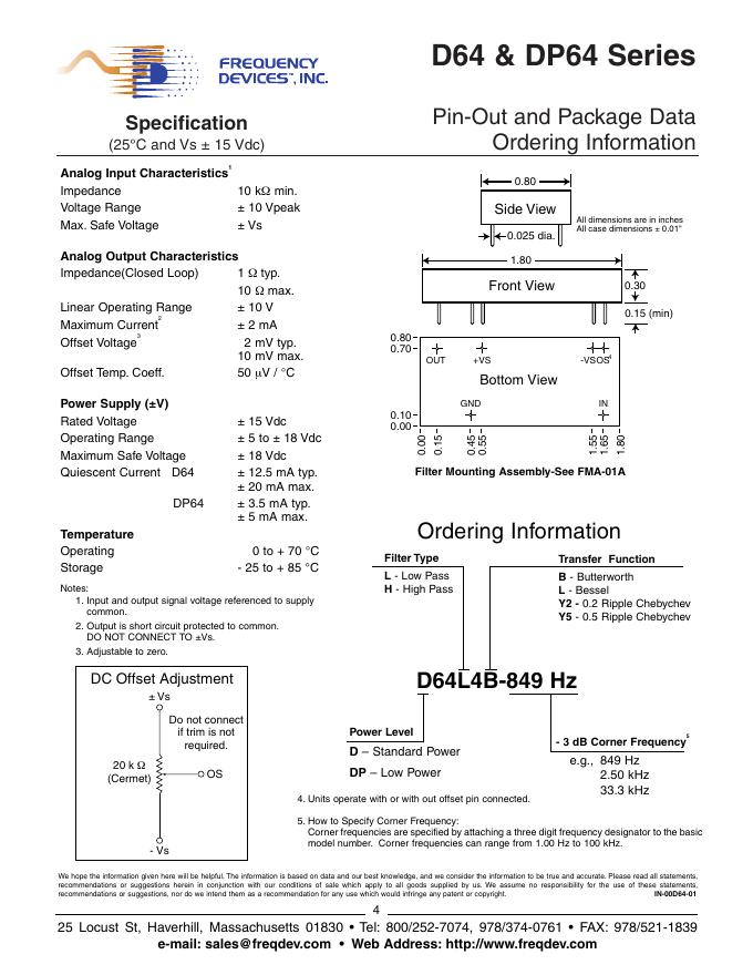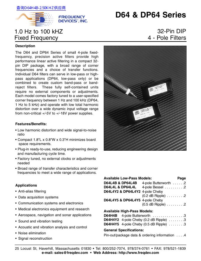 FREQUENCY D64 & DP64 Series 32-Pin DIP 4 - Pole Filters 数据手册.pdf