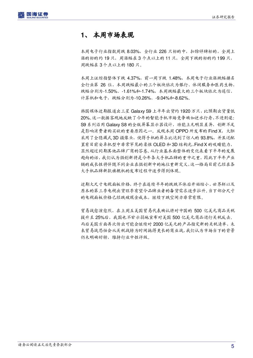 国海证券:电子行业周报:三星S9出货不及预期,大尺寸面板跌幅趋缓.pdf