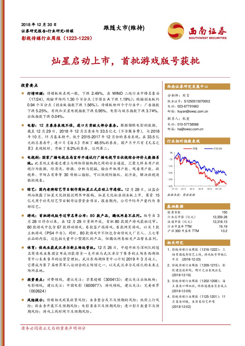 西南证券:影视传媒行业周报:灿星启动上市,首批游戏版号获批.pdf