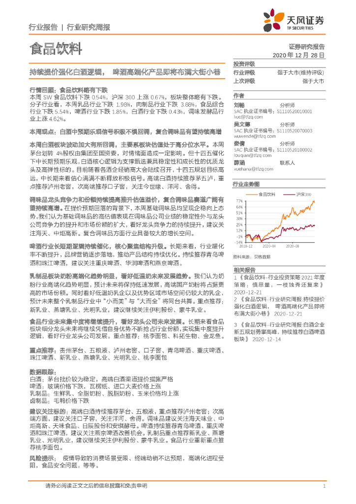 天风证券:食品饮料行业:持续提价强化白酒逻辑,啤酒高端化产品即将布满大街小巷.pdf
