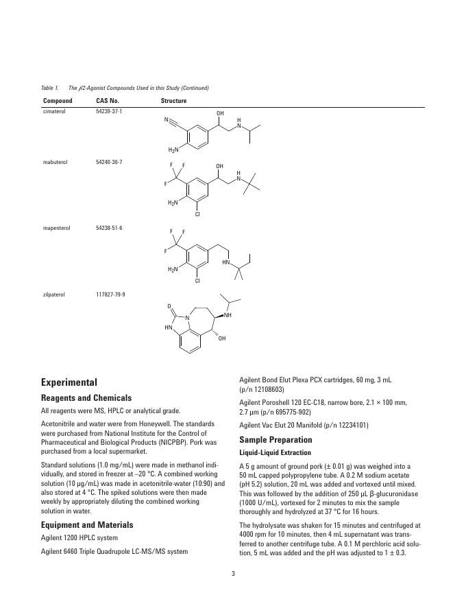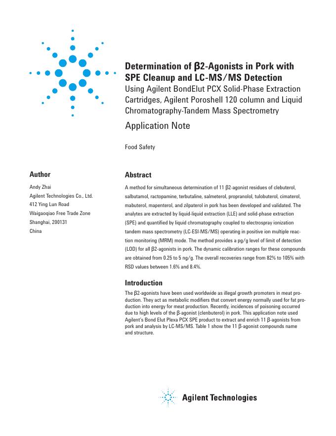 Agilent Determination of β2-Agonists in Pork with SPE Cleanup and LC-MS/MS Detection 数据手册.pdf