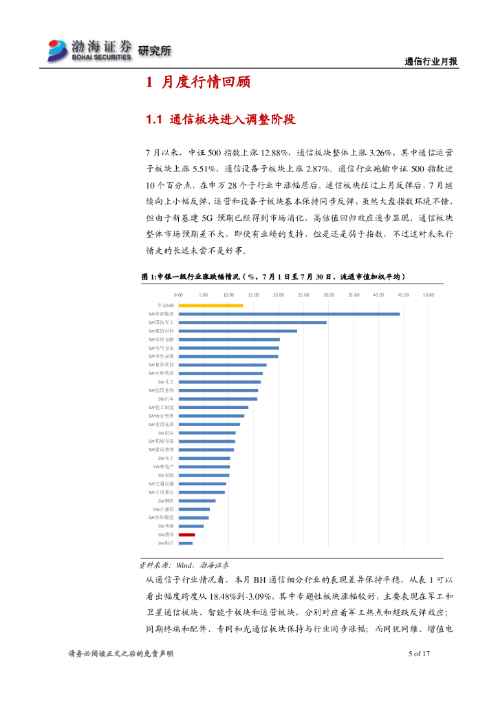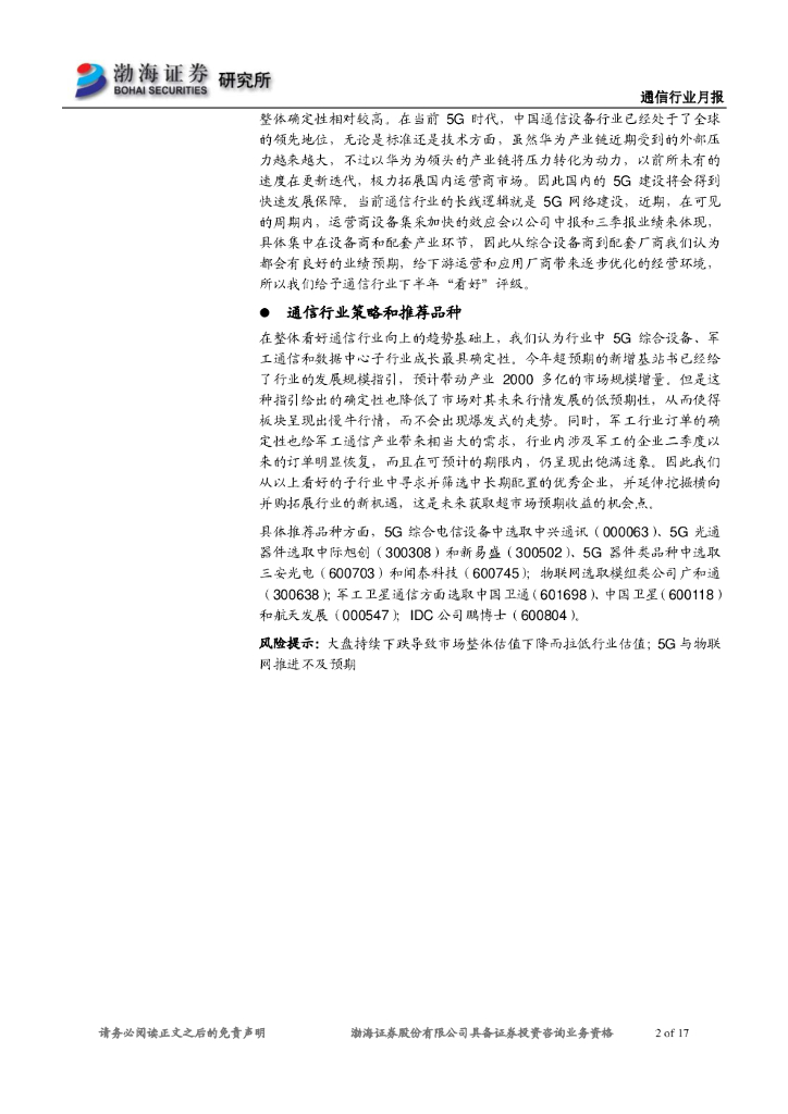 渤海证券:通信行业月报:5G建设效应显现,把握行业确定性投资机会.pdf