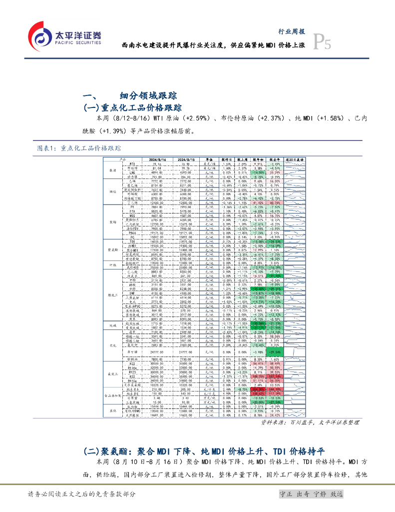 太平洋证券:基础化工行业周报:西南水电建设提升民爆行业关注度,供应偏紧纯MDI价格上涨.pdf