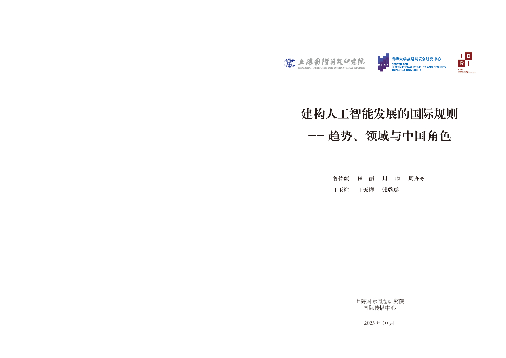 上海国际问题研究院:建构人工智能发展的国际规则--趋势、领域与中国角色(2023).pdf