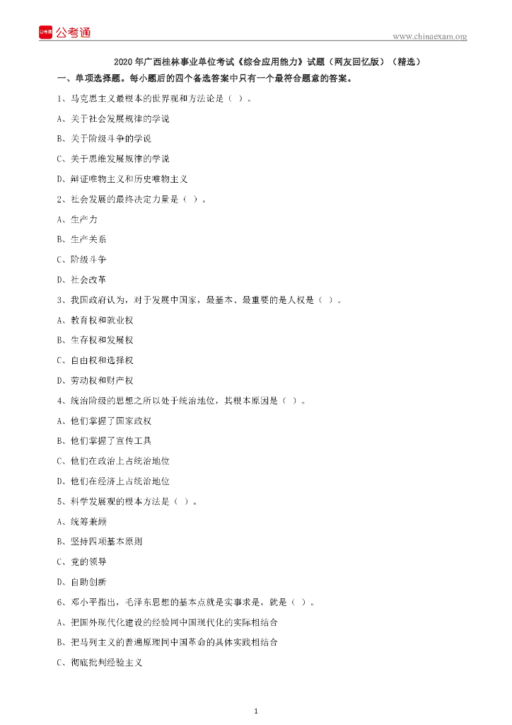 2020年广西桂林事业单位考试《综合应用能力》试题(精选).pdf