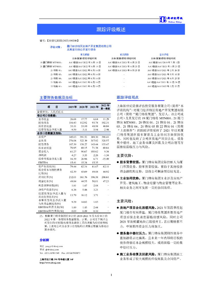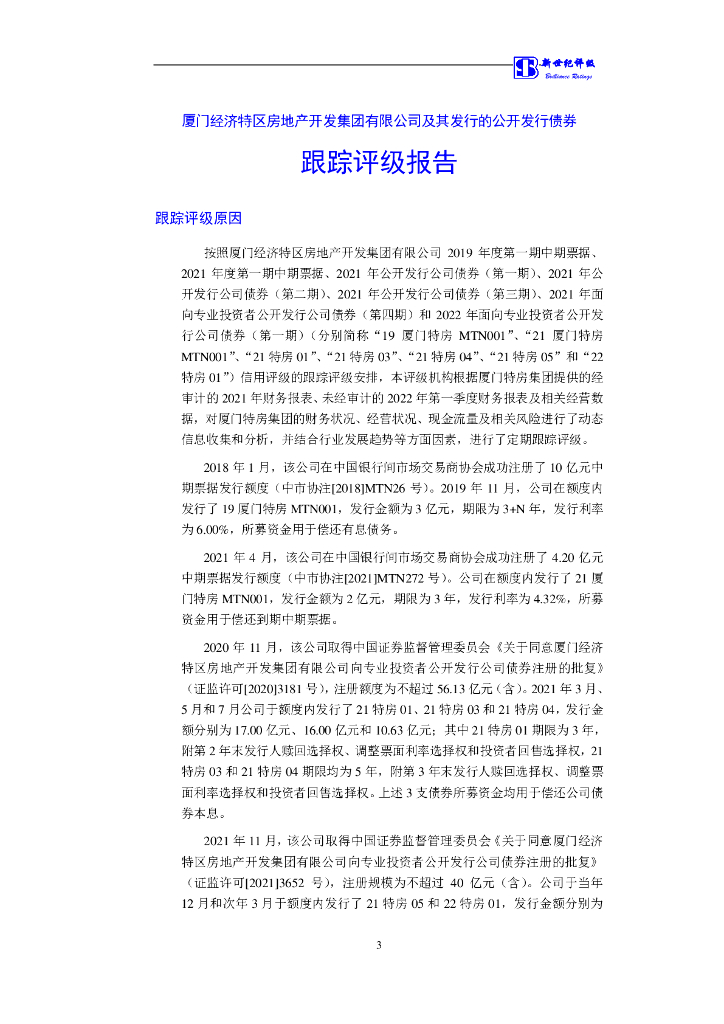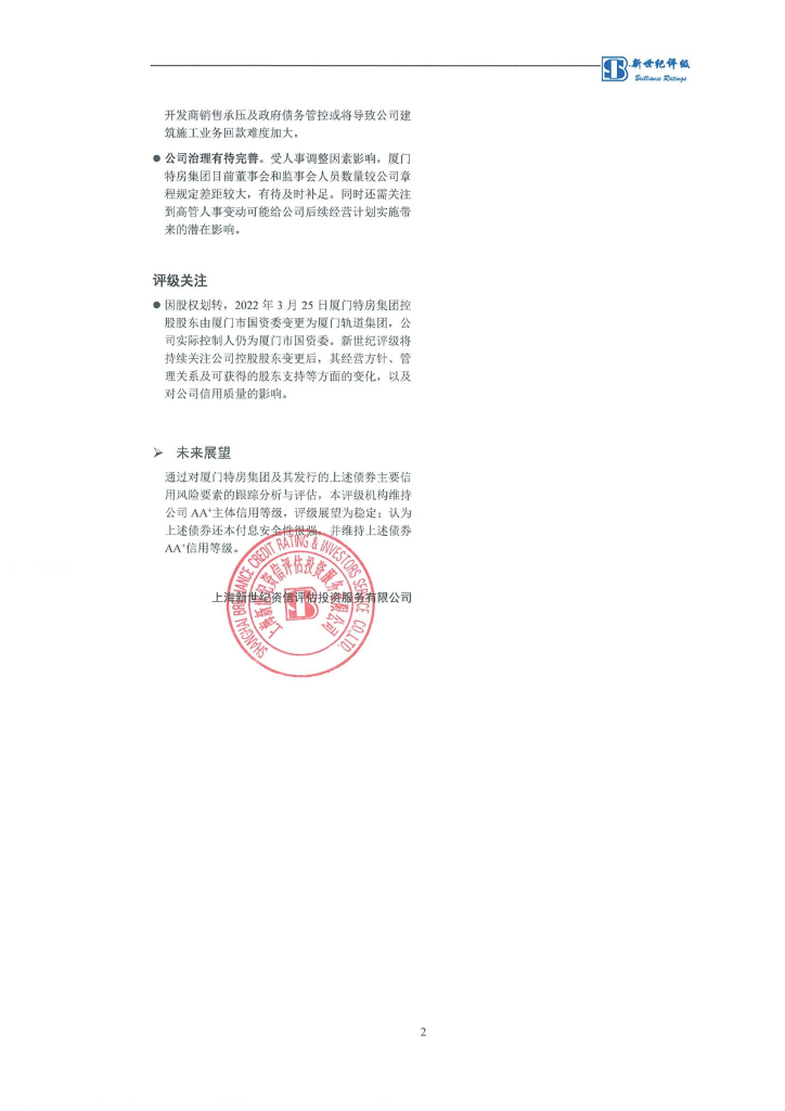 新世纪:厦门经济特区房地产开发集团有限公司及其发行的公开发行债券跟踪评级报告.pdf