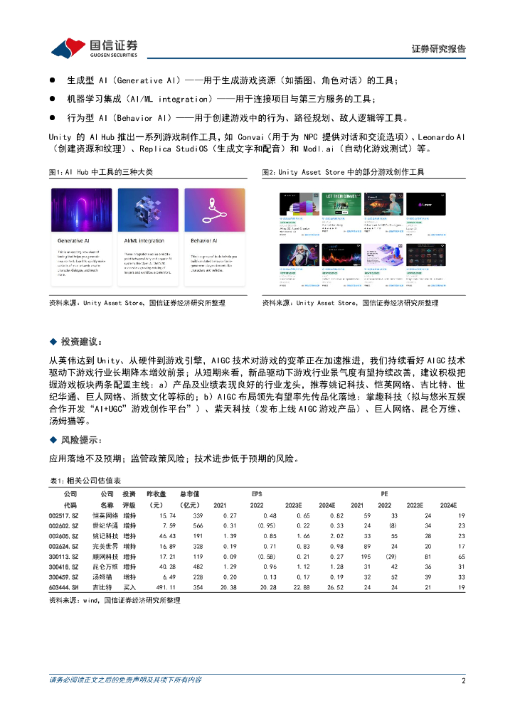 国信证券:传媒AIGC系列研究:Unity发布AI新产品并完善AI Hub布局,游戏场景AI落地有望加速.pdf