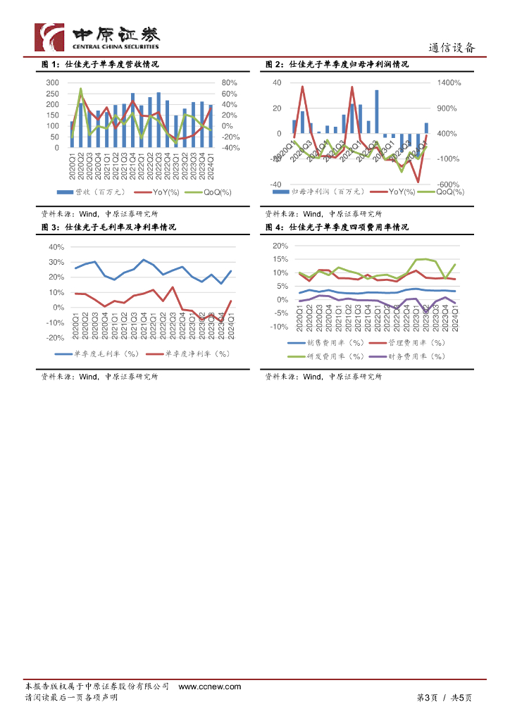 中原证券:仕佳光子(688313)-年报点评:三大业务组合稳健发展,2024Q1扭亏为盈.pdf