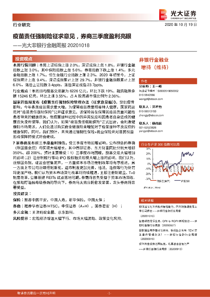 光大证券:光大非银行金融周报:疫苗责任强制险征求意见,券商三季度盈利亮眼.pdf