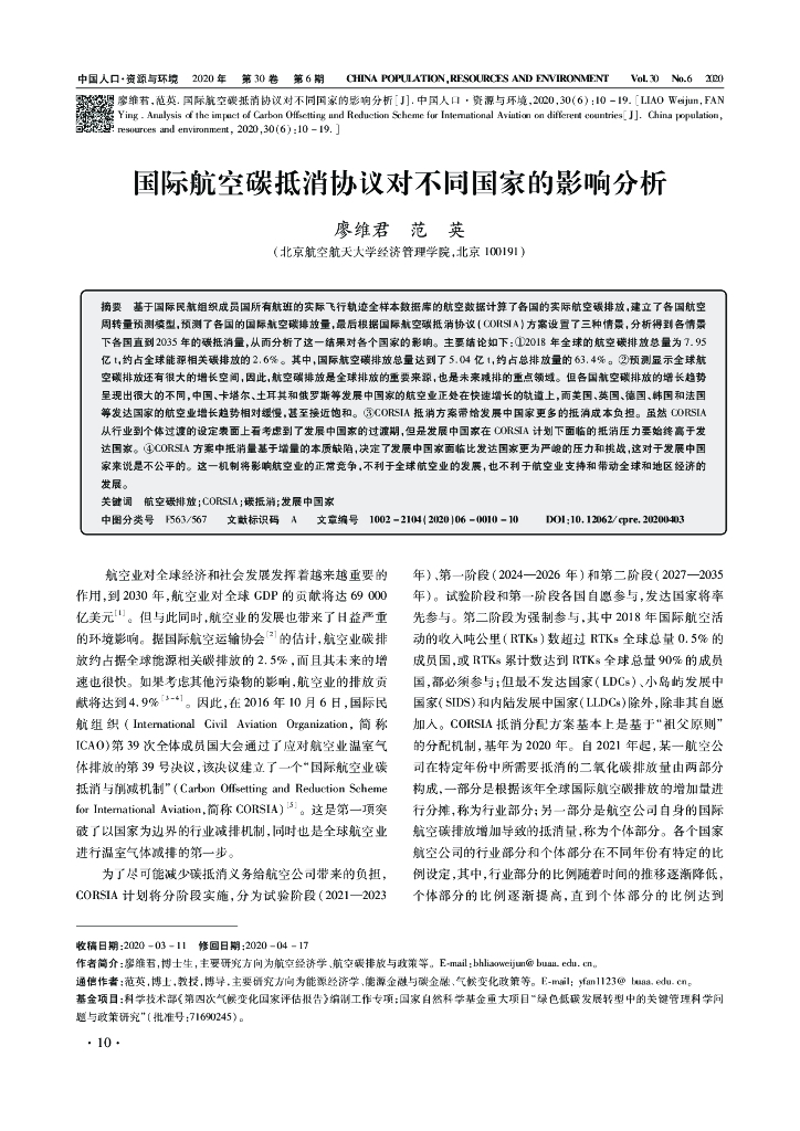 国际航空碳抵消协议对不同国家的影响分析.pdf