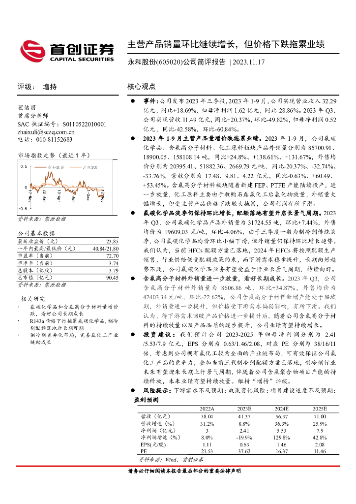 首创证券:永和股份(605020)-公司简评报告:主营产品销量环比继续增长,但价格下跌拖累业绩.pdf
