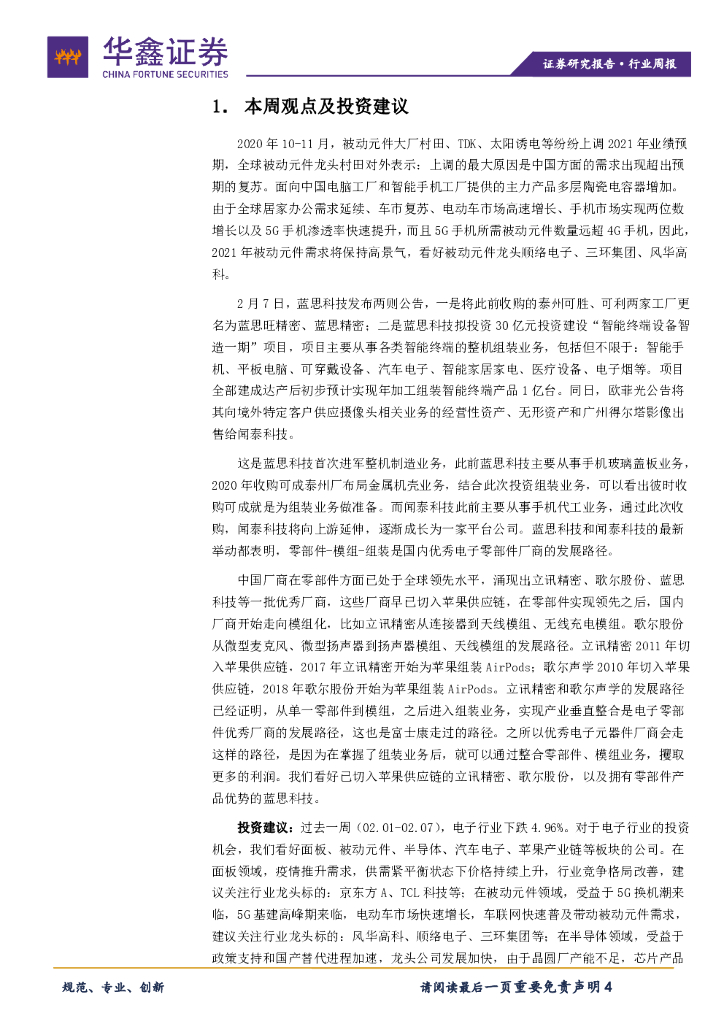 华鑫证券:电子行业周报:蓝思进军组装业务,看好被动元件与组装龙头.pdf