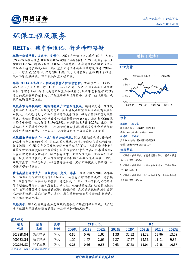 国盛证券:环保工程及服务:REITs、碳中和催化,行业峰回路转.pdf