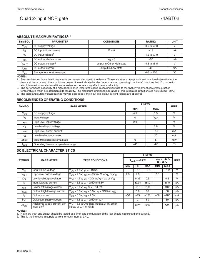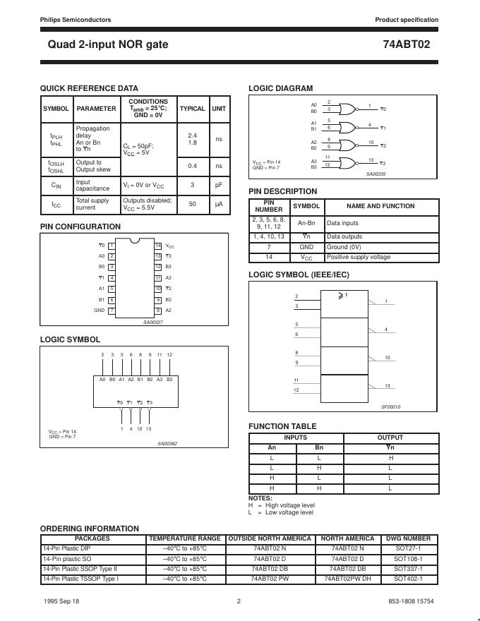 PHILIPS 74ABT02 Quad 2-input NOR gate 数据手册.pdf