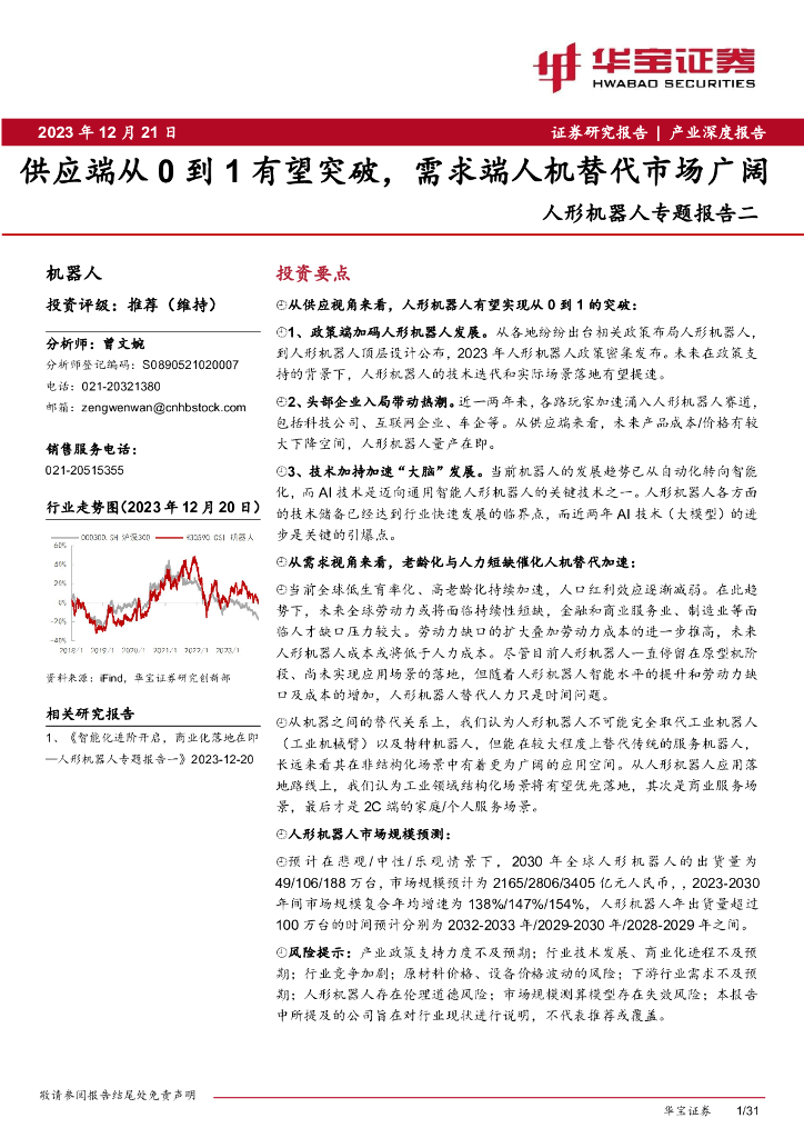 华宝证券:人形机器人专题报告二:供应端从0到1有望突破,需求端人机替代市场广阔.pdf