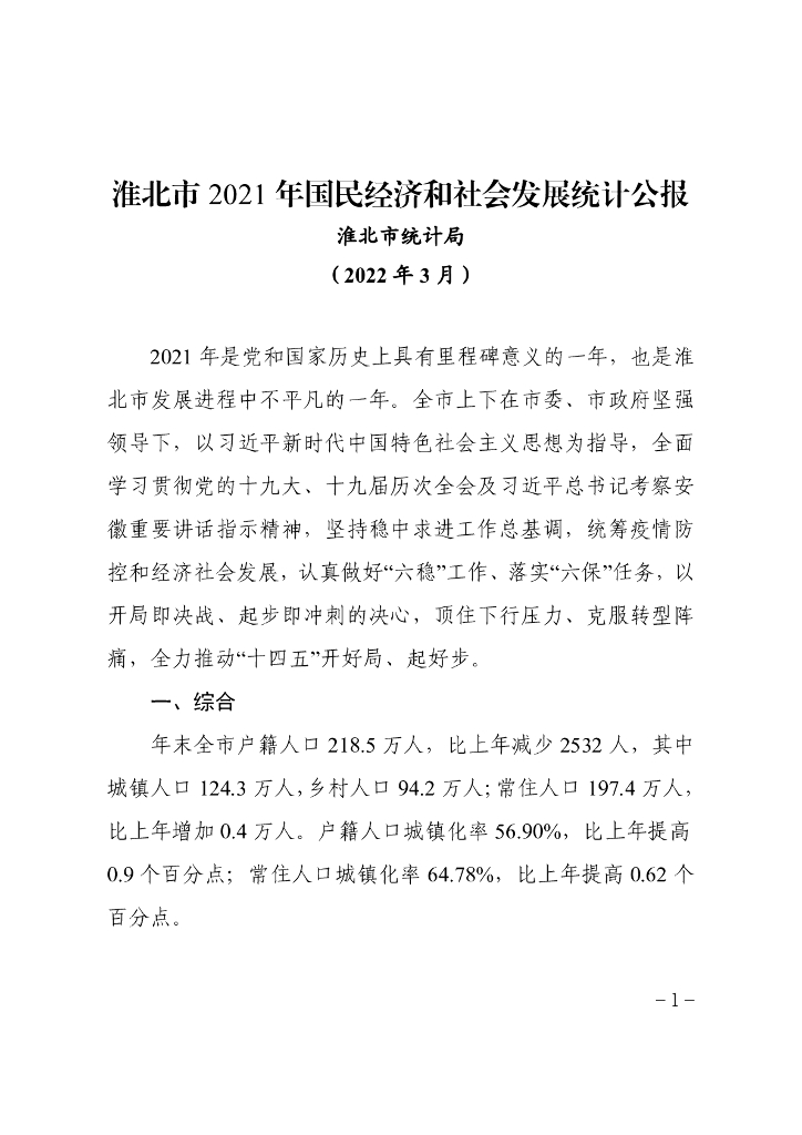 淮北市2021年国民经济和社会发展统计公报.pdf