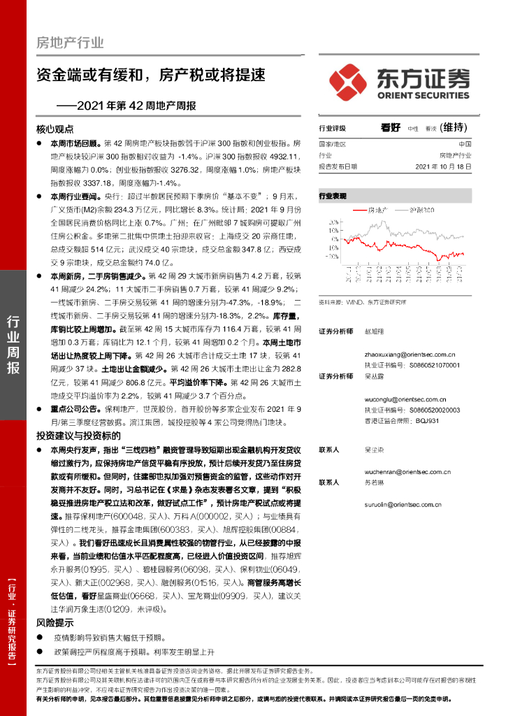 东方证券:房地产行业2021年第42周地产周报:资金端或有缓和,房产税或将提速.pdf