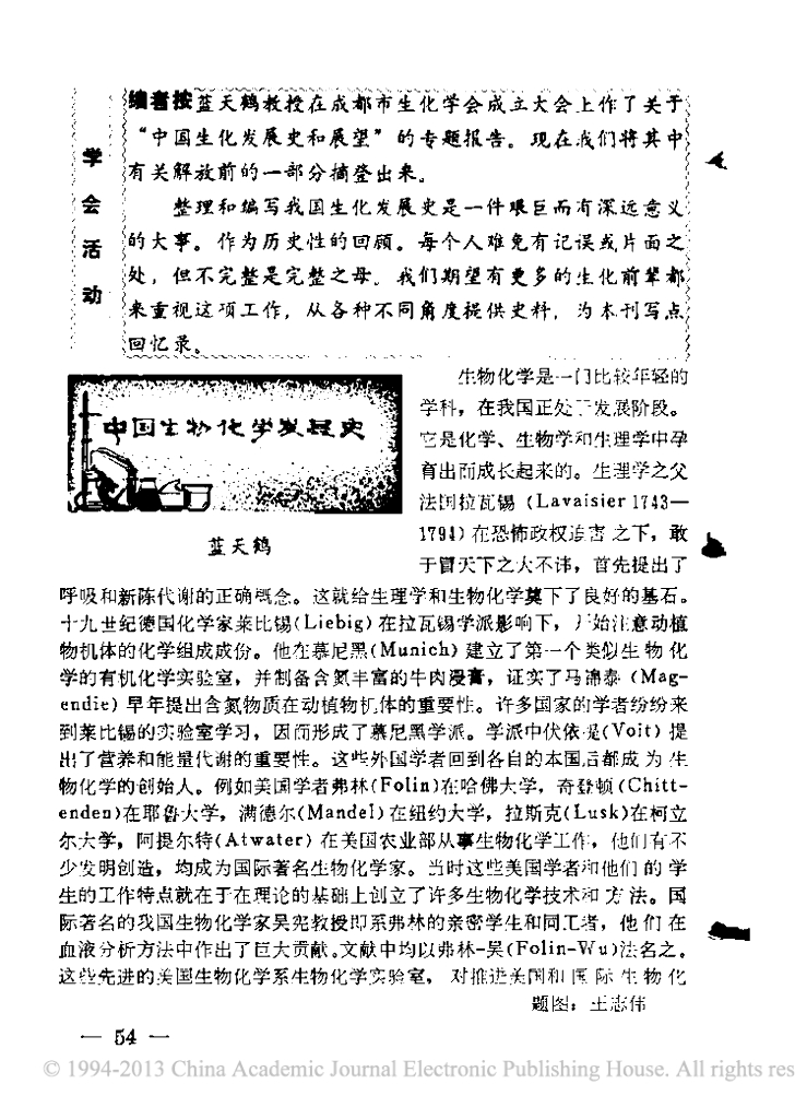 《药学的生物化学基础》文献资料-中国生物化学发展史.pdf