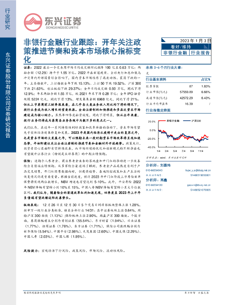 东兴证券:非银行金融行业跟踪:开年关注政策推进节奏和资本市场核心指标变化.pdf