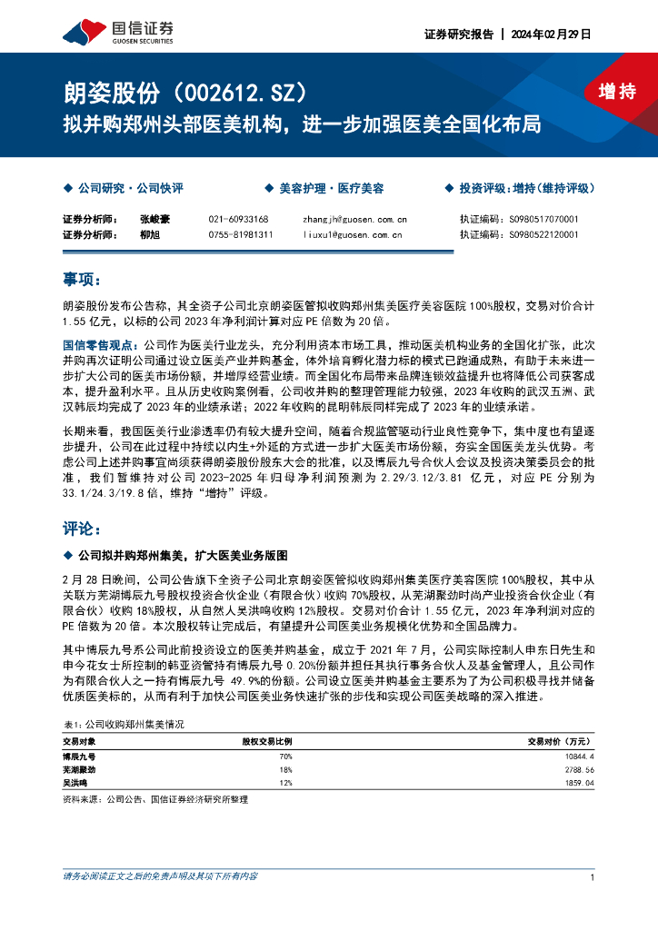 国信证券:朗姿股份(002612)-拟并购郑州头部医美机构,进一步加强医美全国化布局.pdf