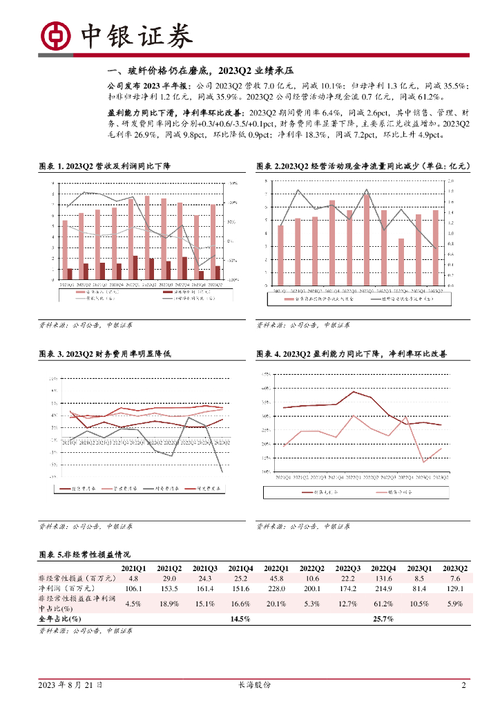 中银证券:长海股份(300196)-2023Q2营收利润同比降幅收窄,静待供需修复.pdf