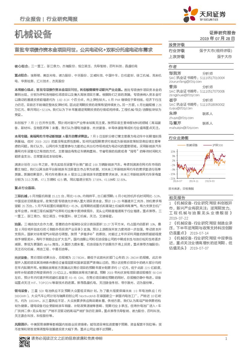 天风证券:机械设备行业研究周报:首批专项债作资本金项目问世,公共电动化+双积分托底电动车需求.pdf